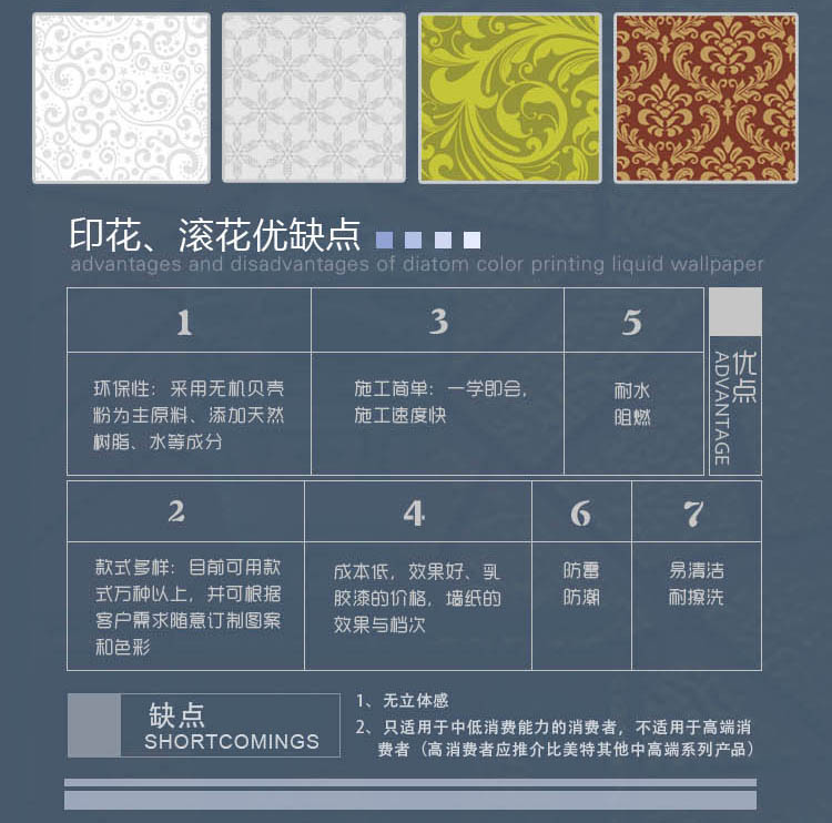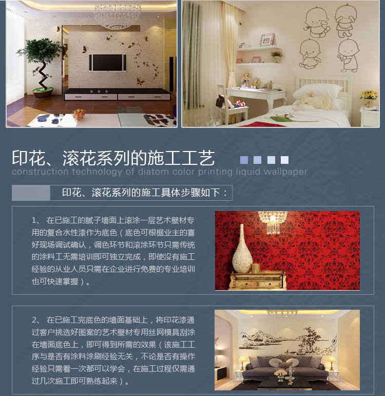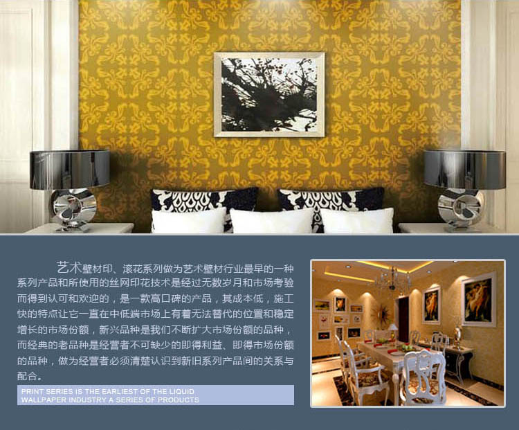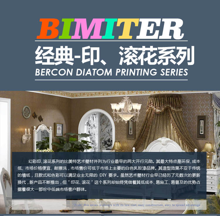 比美特十年的创新之作,通过丝印网或镂印施工,产生高端壁纸效果。花色图案种类多,表现内容丰富,富有立体感。 经典-滚花系列