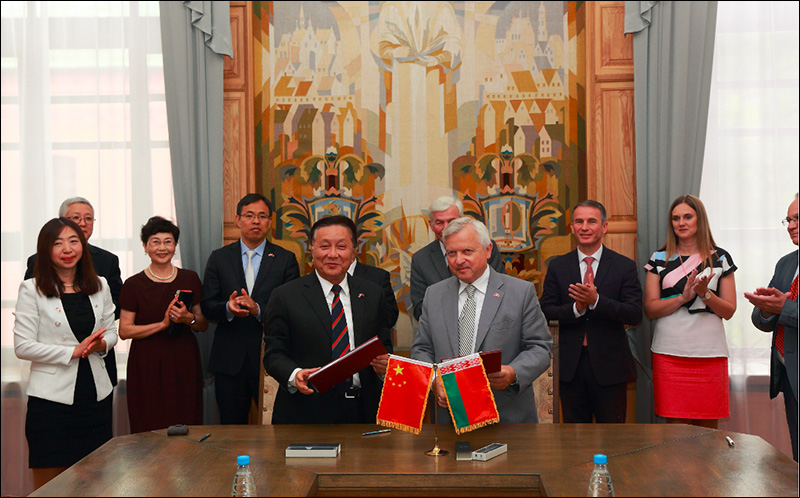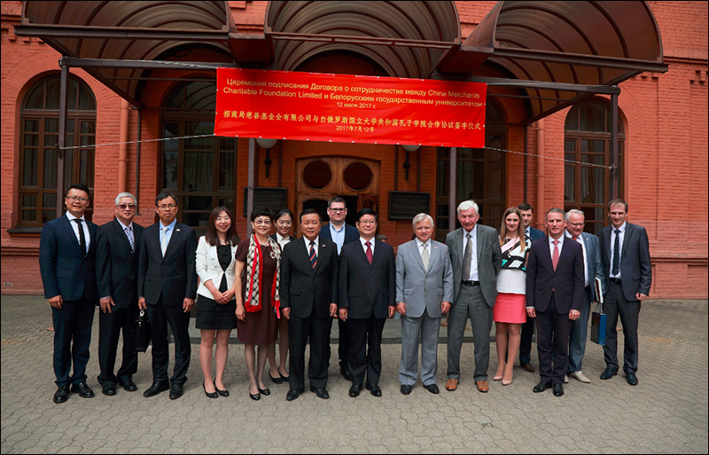 7月12日上午,在招商局慈善基金會與白俄羅斯國立大學共和國孔子學院合作框架協議签字仪式在明斯克举行。中国驻白俄罗斯大使崔启明出席签字仪式。白俄罗斯共和国孔子学院院长、白中友好协会会长、前白俄罗斯副总理、驻华大使托吉克与招商局集团董事、招商局慈善基金会执行副理事长胡政代表双方在合作协议上签字。