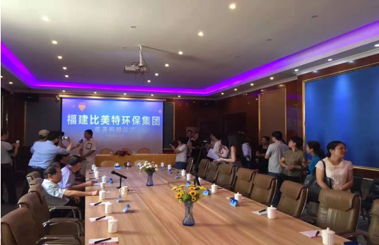 2016年9月19日上午,福建比美特环保集团有限公司“免费为台风受灾县闽清、永泰公益救灾捐赠活动”于福州比美特环保集团一楼多功能会议室隆重举行。福州慈善总会会长方庆云(原福建省常委,原福州市委副书记)、比美特环保集团董事长、集团总经理、净卫士硅藻泥总经理、农工党福州市主委陈向红、闽清慈善机构领导、永泰慈善机构领导及行业相关人士、省市新闻媒体记者等到场出席。