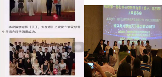 福建比美特环保集团为连续不断出现的拐卖儿童事件痛心疾首,并于16年合作刘德华御用替身甘罗凡先生拍摄公益片【孩子,你在哪】(失孤前传)并于福州海峡会展中心成功首映,首映当晚举办慈善义捐,现场清点并且转交慈善总会。呼吁社会正能量,没有拐卖,就没有伤害。影片索要方式,请关注绣时尚官方动态。