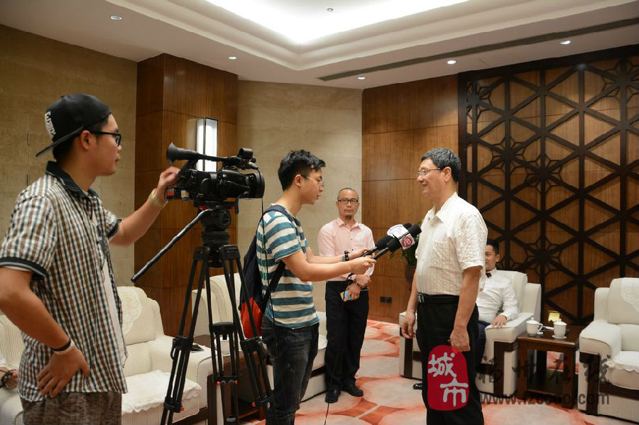 发布会前福建经济台记者采访了市慈善总会副会长张焰和福州比美特环保产品有限公司冯国春董事长