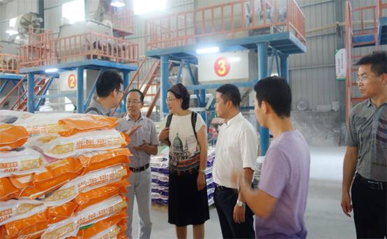 厂部人员给张秘书长详细介绍液体艺术壁材的生产流程和品质检测