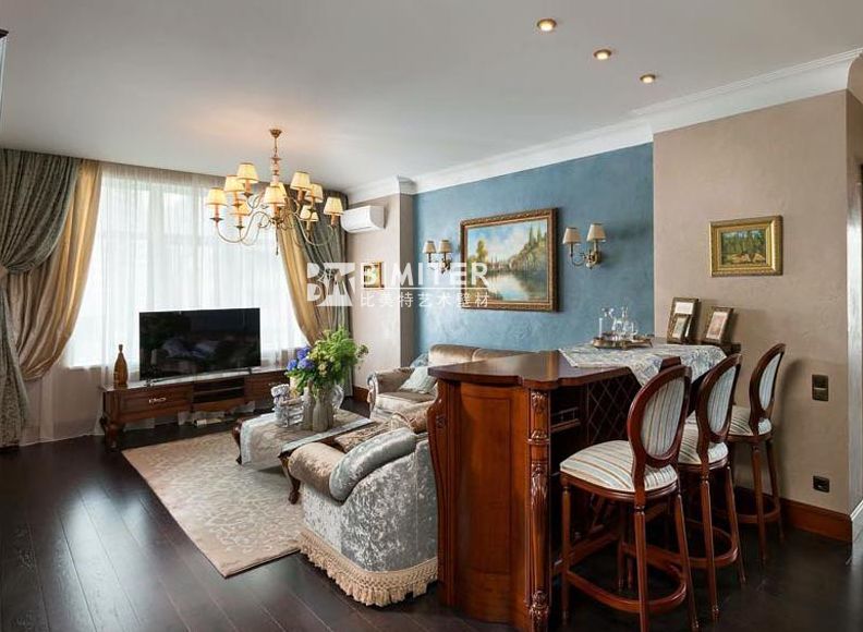 深色调还是浅色调的选择需要考虑房子的大小。大户型且采光充足的房子可尽管任性地使用深色调艺术壁材。
