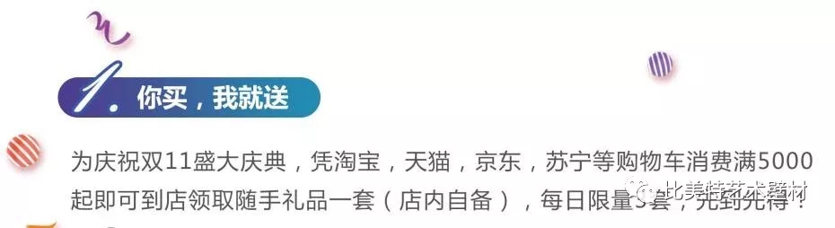 为庆祝双11盛大庆典,凭淘宝,天猫,京东,苏宁等购物车消费满5000起即可到店领取随手礼品一套,每日限量3套,先到先得!