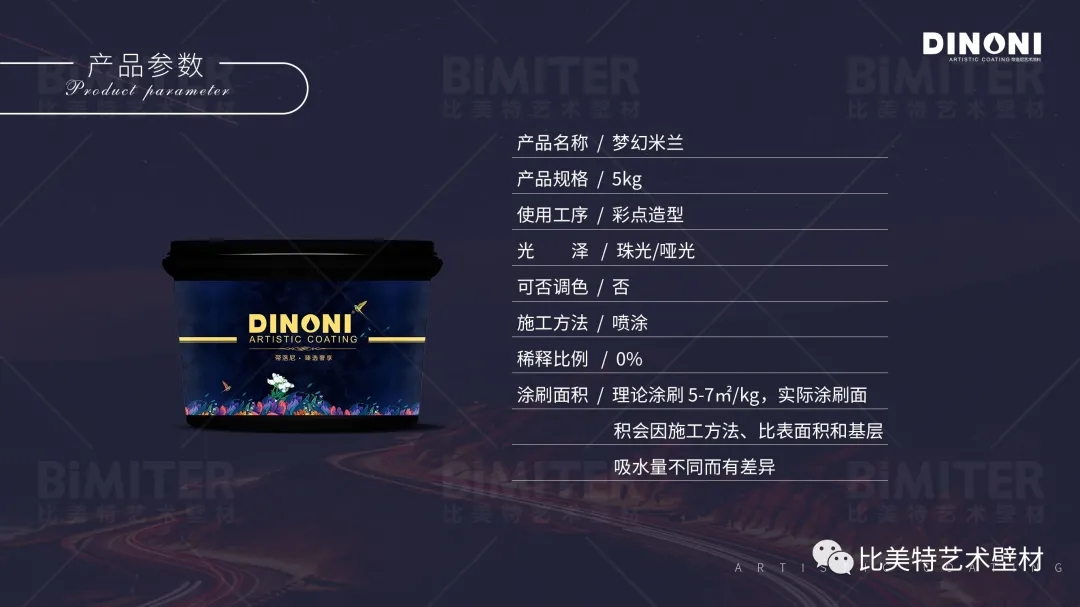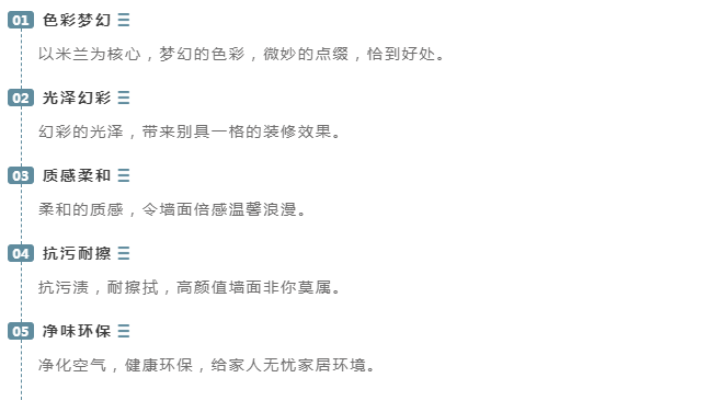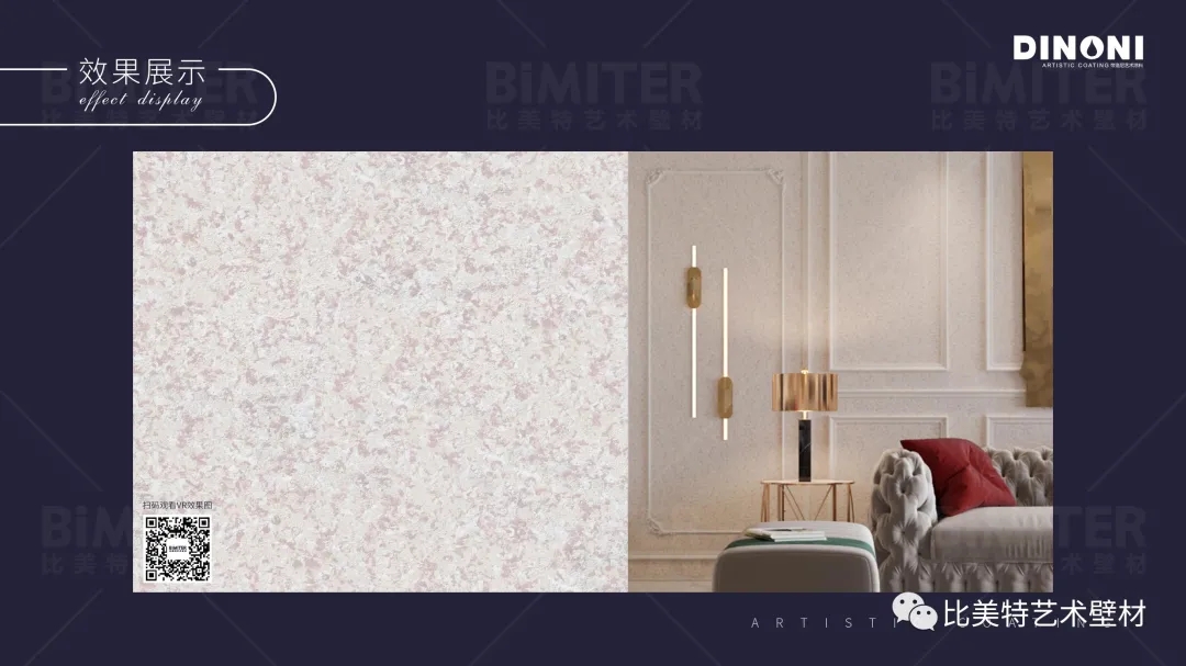 梦幻米兰系列的设计灵感来源于意大利米兰的梦幻色彩艺术,产品效果便如其名,梦幻交织的色彩,珠光点点的光泽,雅致柔和的质感,不论是客厅,卧室,书房,还是儿童房等都能打造出梦幻的艺术装饰效果。产品为珠光幻彩系列的经典升级之作。