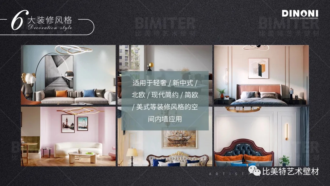六大装修风格,适用于轻奢、新中式、北欧、现代简约、简欧与美式等装修风格的空间内墙应用。