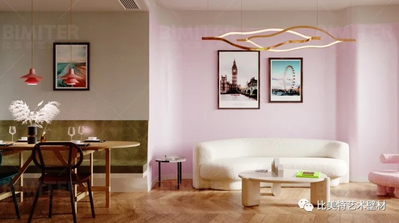 自古搭配出美感,粉色若是配对合适的色彩,有种神奇的魔力,不仅能够增加墙面的甜度,更能改变房间的气场,像蓝、灰、黑三个色系都是粉色墙面很好的搭配对象。