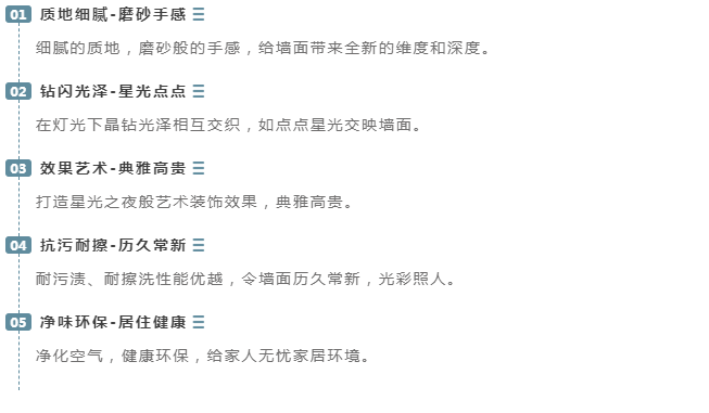 巴黎星光系列的设计灵感来源于梵高的星光之夜,巴黎星光的装饰效果如点点星光隐约闪耀,在灯光下晶钻光泽相互交织,色彩如梦如幻,质感细腻,典雅高贵,不论是客厅,卧室,书房,还是儿童房等都能打造出星光之夜的艺术装饰效果,是高端私人定制的首选。