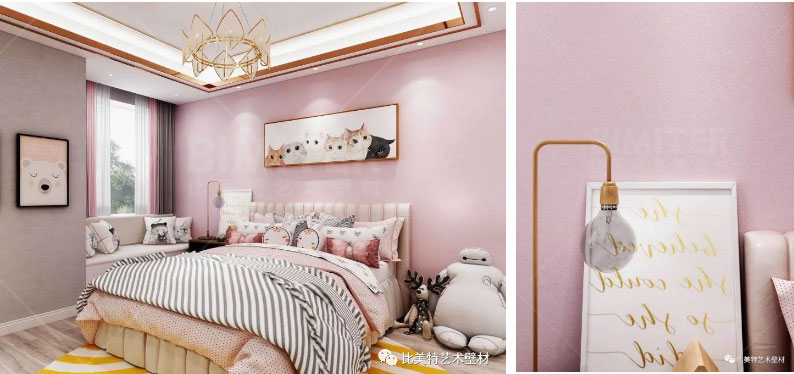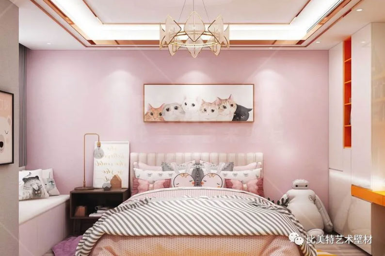 甜蜜温馨的儿童房,粉色与高级灰搭配,浪漫简约。又搭配各类小物品及玩偶的装饰,营造出活泼俏皮、舒适雅致的空间氛围。