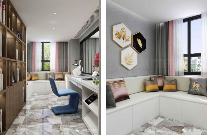 工作室位于客厅沙发后方,半开放设计,多元材质巧妙混搭,凸显空间的质感与轻奢,浓缩着意想不到的功能与细节,打造深受人们喜爱的现代家居空间。