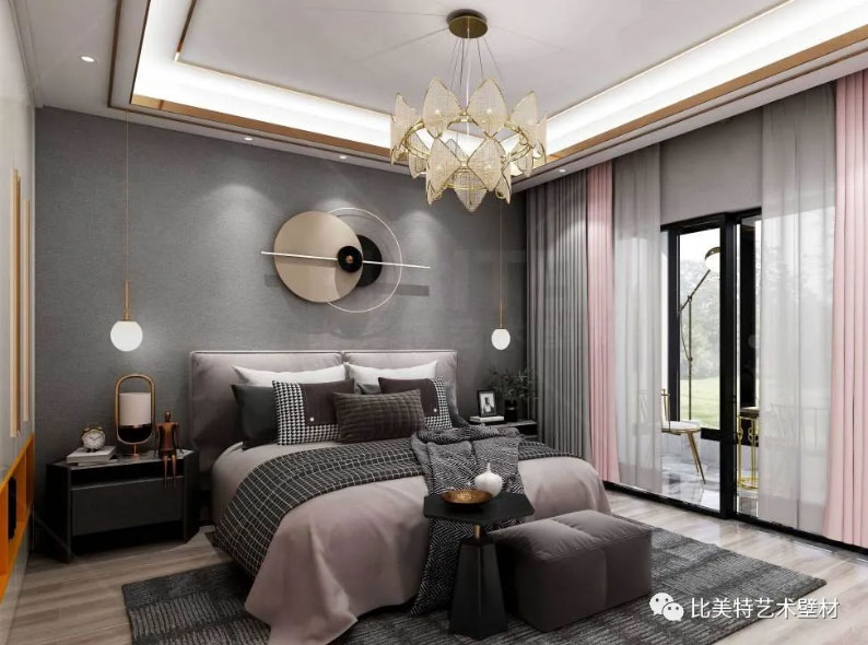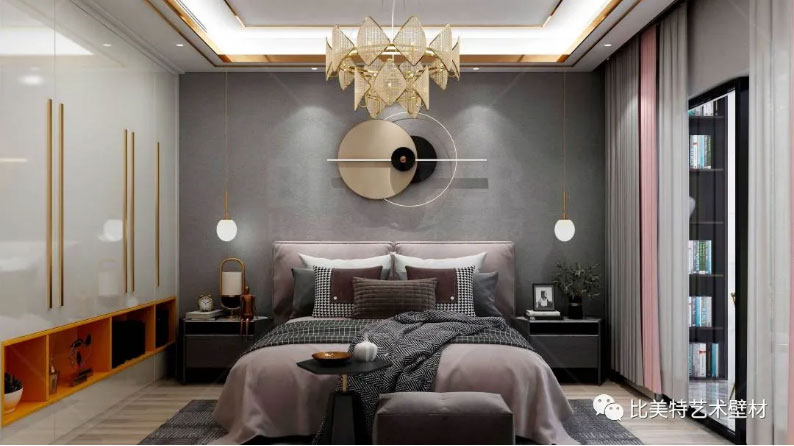 主卧空间的设计简洁而不随意,高级却不浮夸,摒弃了繁复的造型和丰富的色彩搭配,大面积高级灰的空间添入少许亮色,给人带来轻松舒适、温馨大气的感觉。