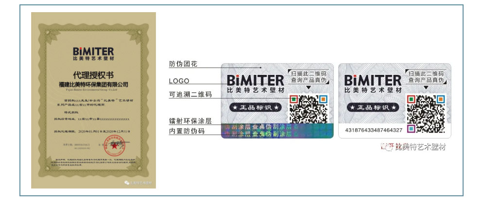 消费者购买比美特产品时,请认准商家有无比美特正规授权书;并且,比美特的每个包装桶上都贴有防伪标签,消费者可刮开防伪涂层,扫码查询产品真伪。