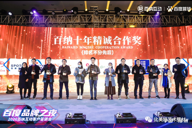 1月17日比美特环保集团作为百度百纳长期合作伙伴应邀参加2020年“百度品牌之夜”2020百纳互动客户答谢会,现场众宾云集,来自福建各地区的百家合作商代表,共同见证着意义非凡的盛典。