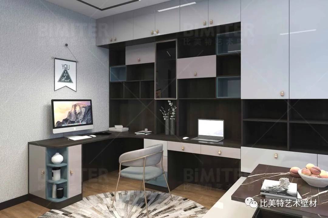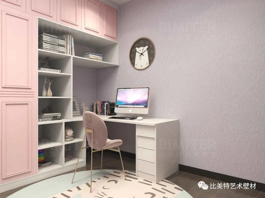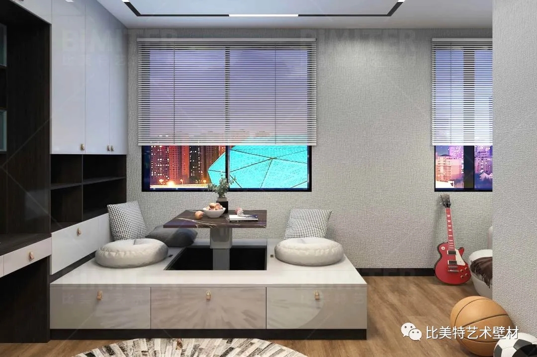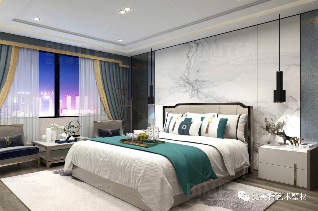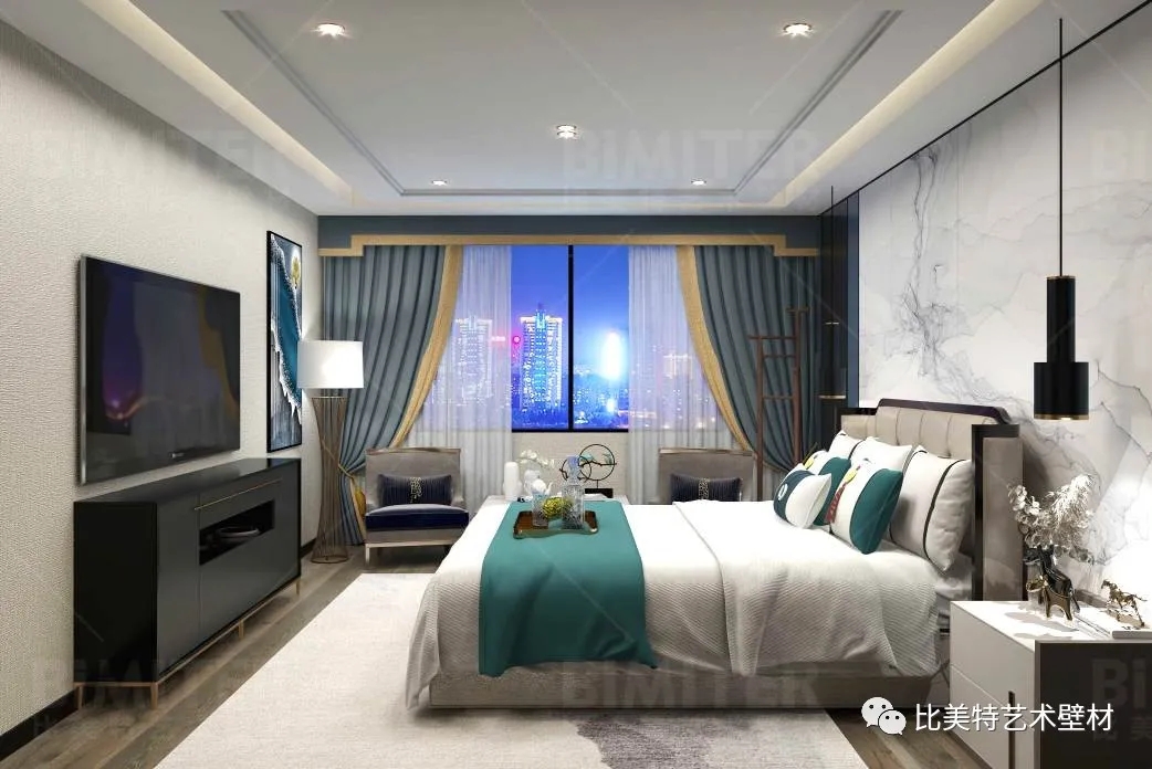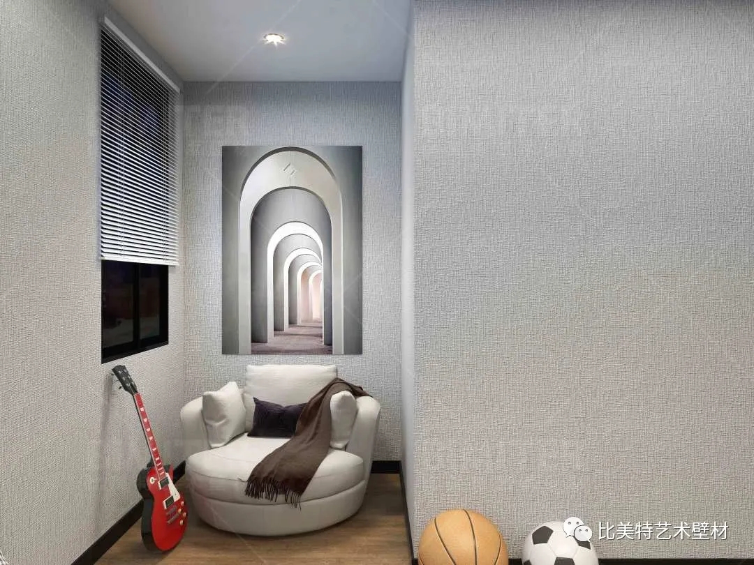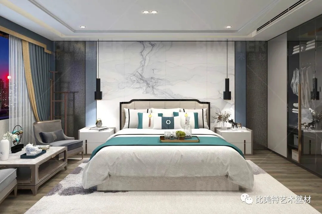 设计理念:本案整体风格为新中式风格辅以现代简约风,墙面采用比美特艺术壁材米兰风情系列,将经典布艺纹理渗入艺术涂料工艺中,让米兰时尚与艺术肌理相互交融,既保留了中国文化的韵味,又结合了当下流行风格的特色,为新中式风格注入了一股律动高雅的气息。