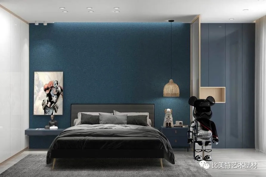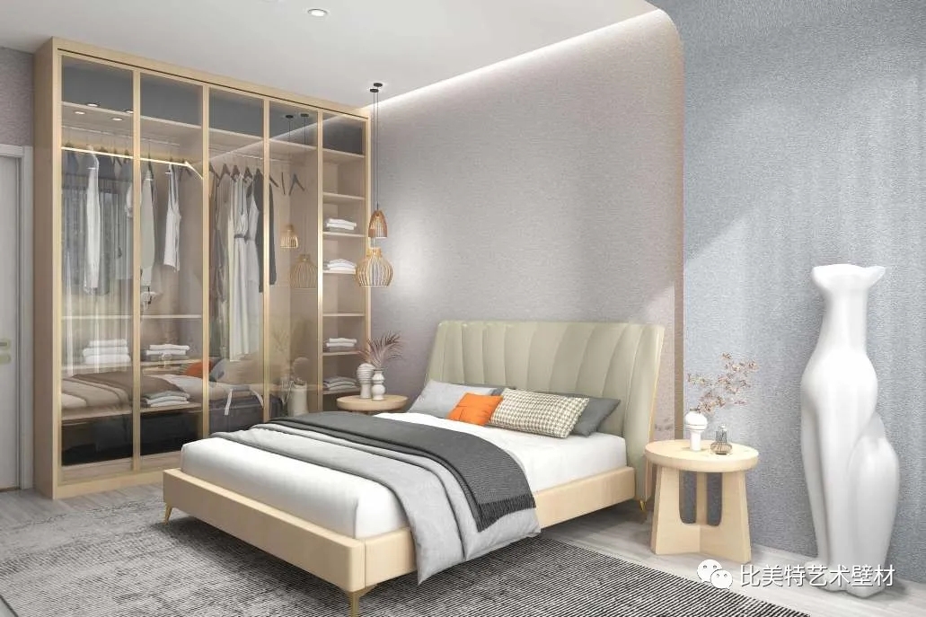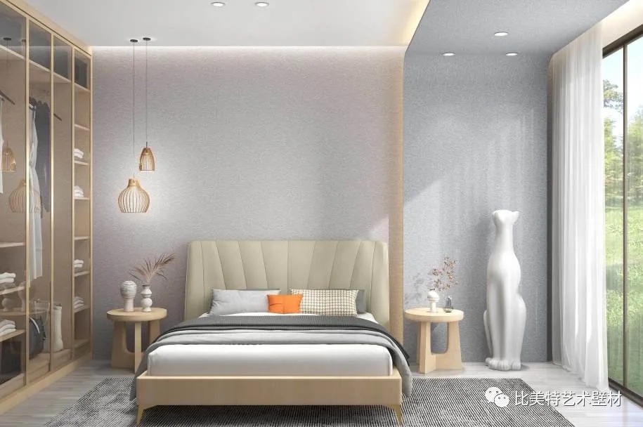 比美特贝壳彩片系列产品,经过先进技术的改良,使产品的附着力强、手感顺滑,使卧室墙面历久常新,是一款优质的室内装饰墙面环保壁材。