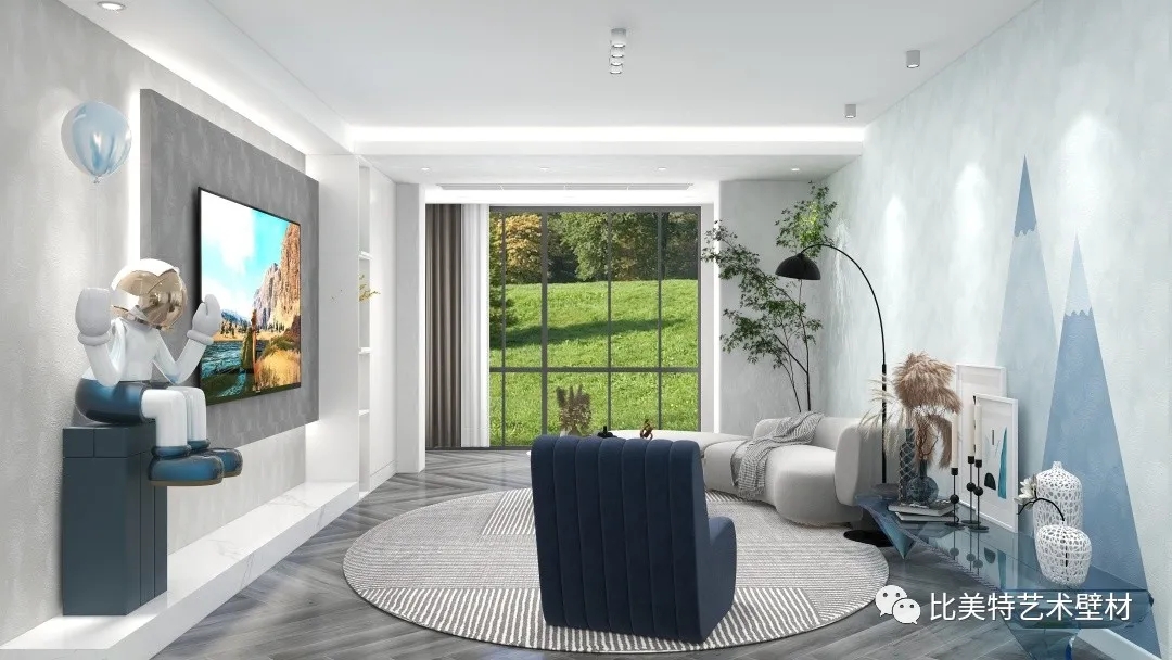应用于现代简约、新中式、轻奢、欧式,美式等装修风格的客厅和卧室等大面积墙面。