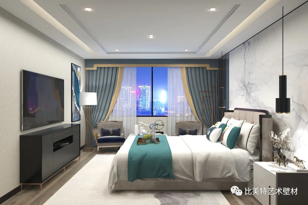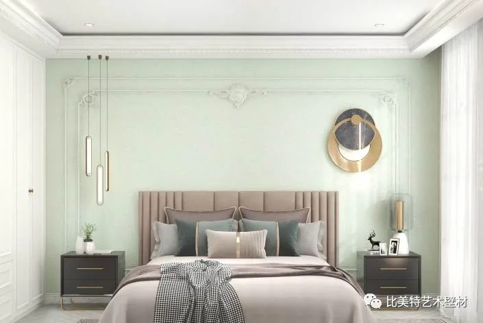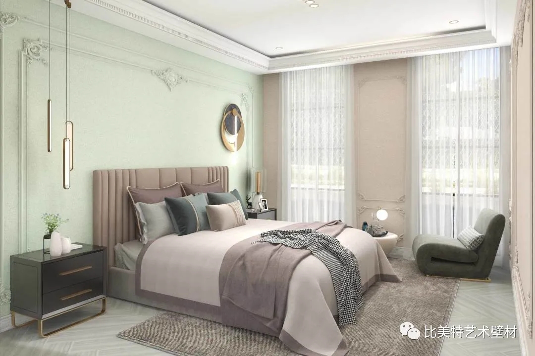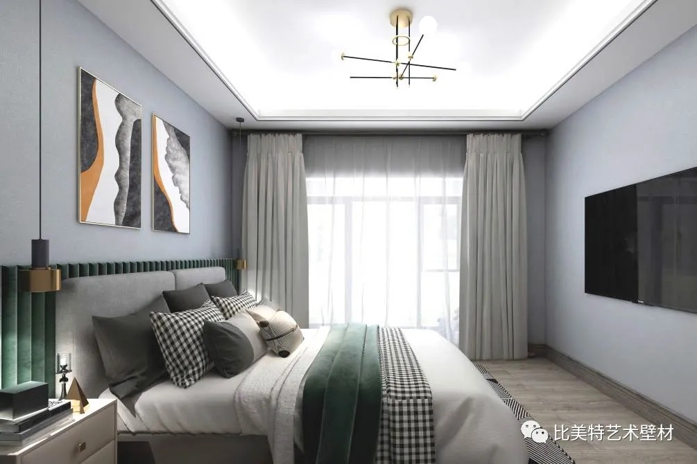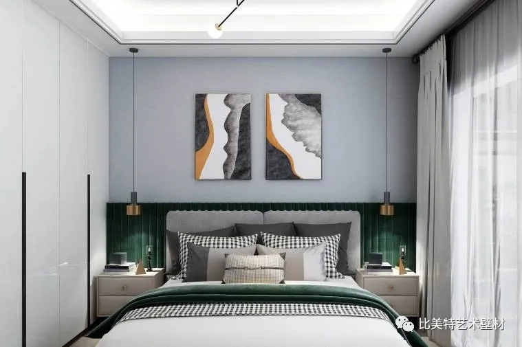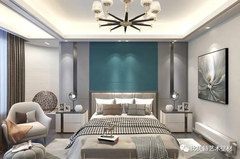 轻奢,传递的是一种舒适优雅的生活方式,映照含蓄质朴的艺术风韵,绿色或者蓝色都很适合用来营造一个安静的休息空间。
