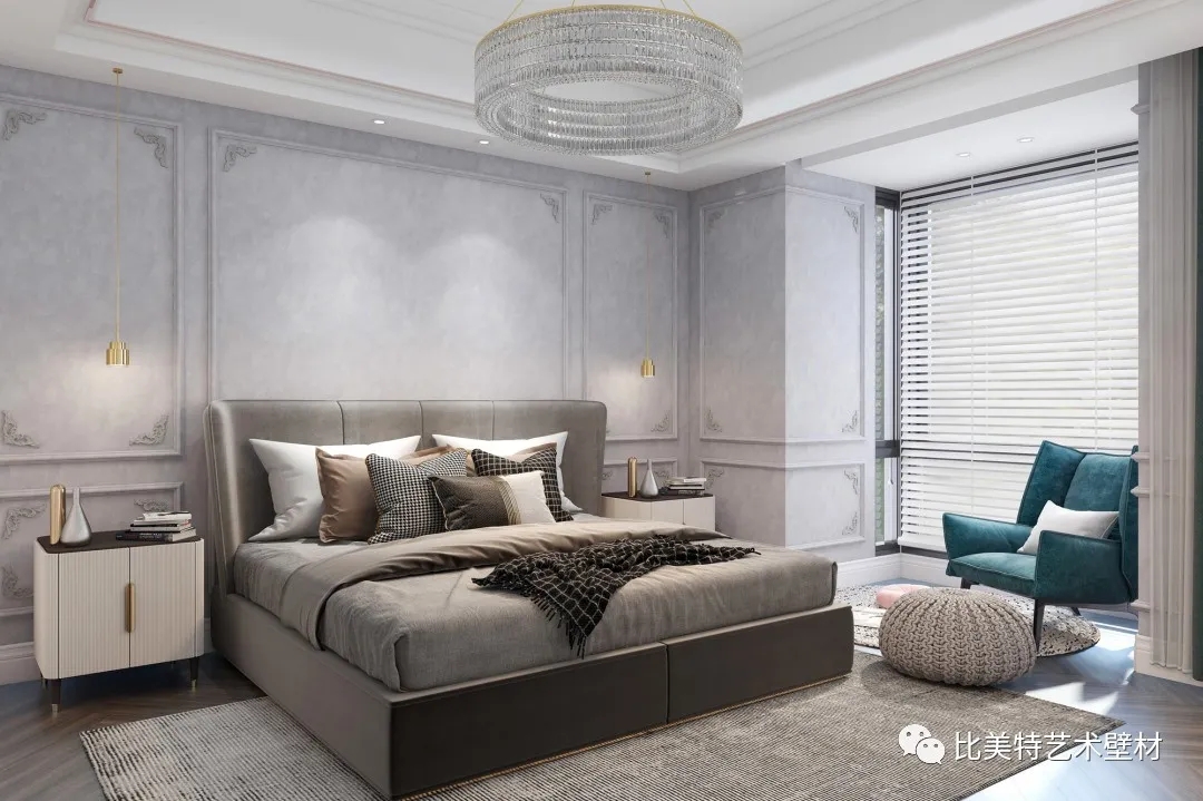 长辈房常以平和素雅的色调为主,选用温和而富有肌理的色调,契合父母舒惬安享的心态,分寸得宜的艺术点缀,映衬出简雅不凡的格调与涵养。